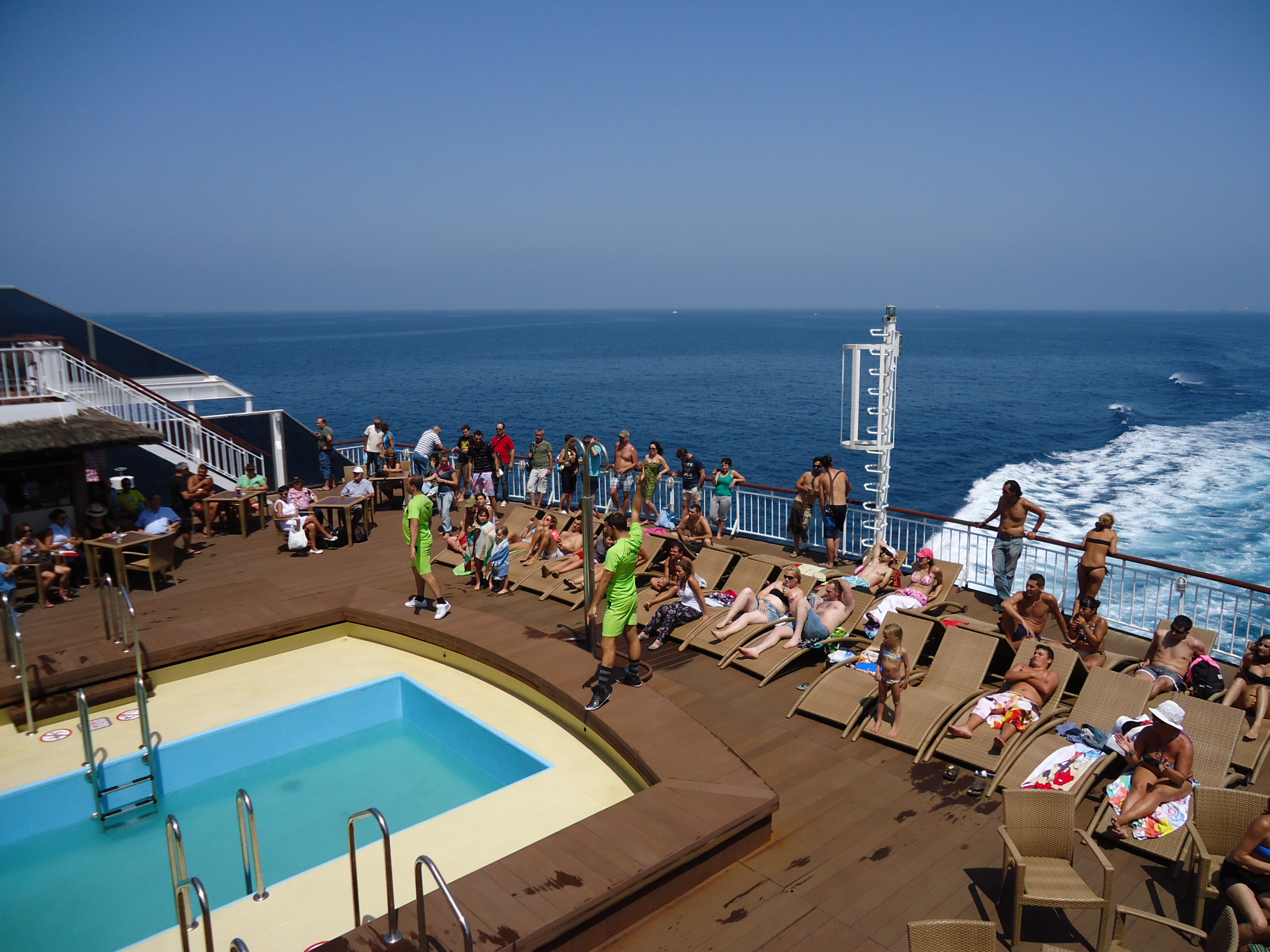 Het is fijn om je mail te lezen en op deze manier met je van gedachten te wisselen. Op dit moment ben ik omringd met de Atlantische Oceaan. Overal waar ik kijk oneindig blauw. Het verst weg bij de oevers van Europees vasteland, Marokko en de Canarische eilanden. Het is een enorme boot, met WiFi, maar dat is erg duur. Het versturen van dit bericht moet dan ook wachten. Er is een zwembad met een cocktailbar, een animatieteam (Dansen en bingo. Terwijl er overal om je heen golven zijn om naar te kijken!) en er zijn, naast hotelkamers zelfs twee suites aan boord voor diegenen die deze oversteek tot iets heel bijzonders willen maken.
