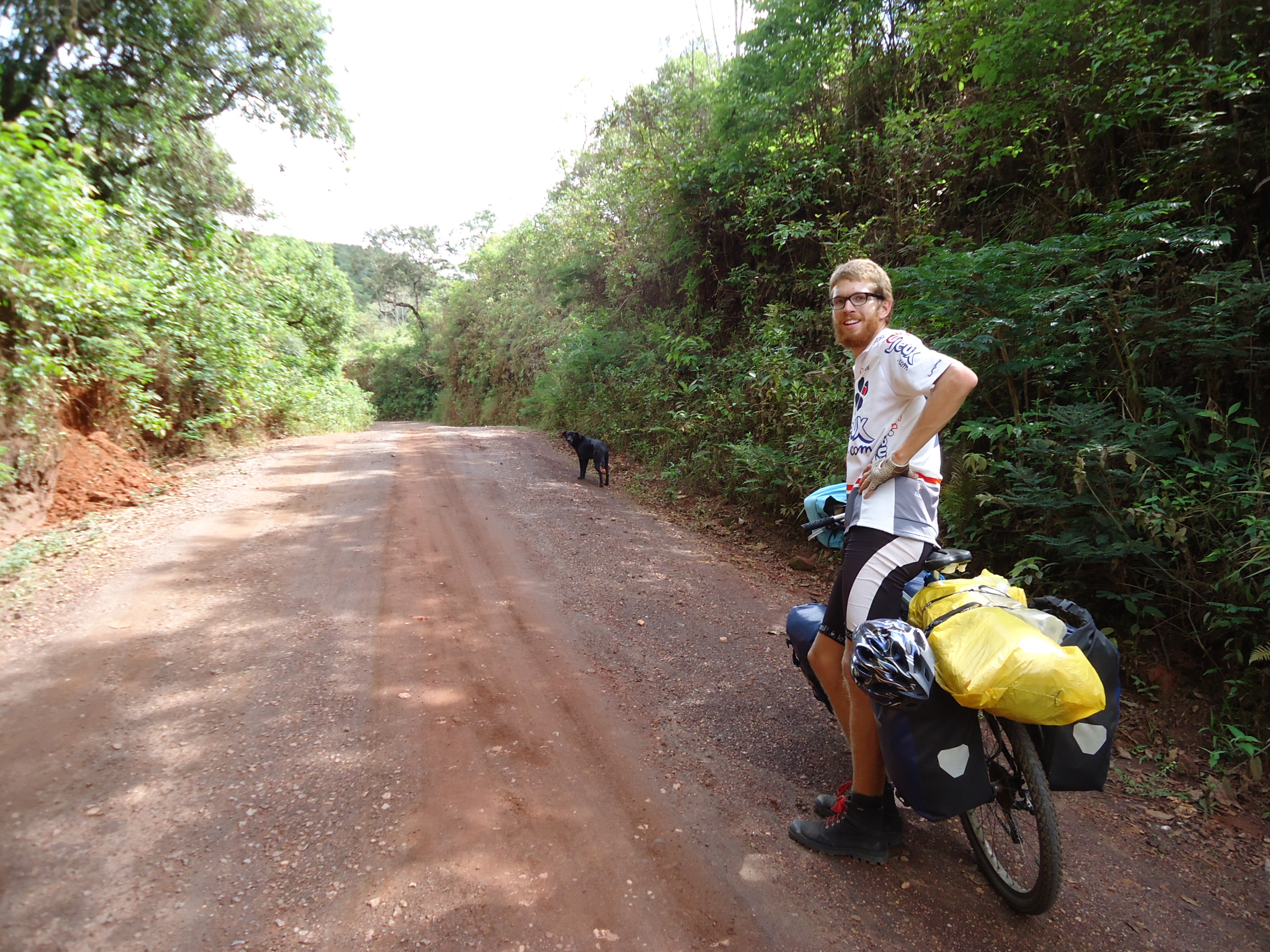 Als wij de berg af sjeezen met 40km/u, komt hij hijgend achter ons aan. Na een tiental kilometers lijkt het er echt op dat hij voor ons gekozen heeft en wij verzinnen een naam voor hem. We noemen hem Xico, naar de legende Chico Rei uit de slavenperiode in Brazilië. Hij is namelijk pikzwart, moedig en sterk.